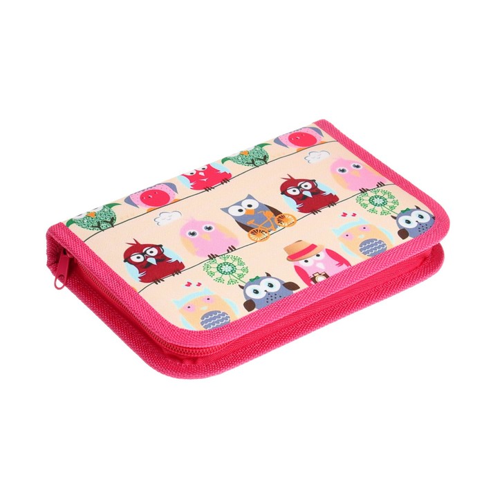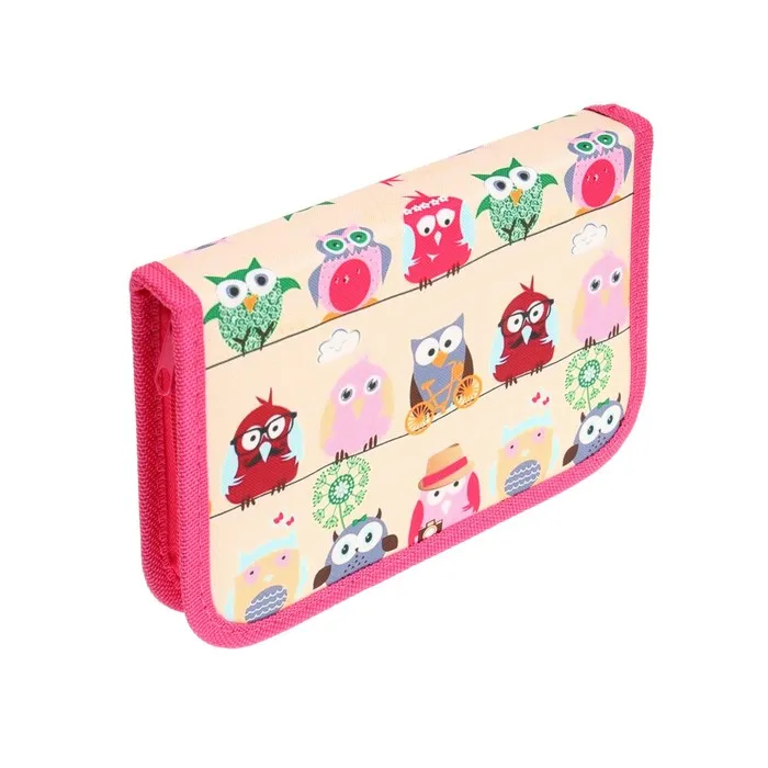 Пенал школьный "Совы", 13 х 19,5 см, на молнии, 1 секция, с наполнением, ткань