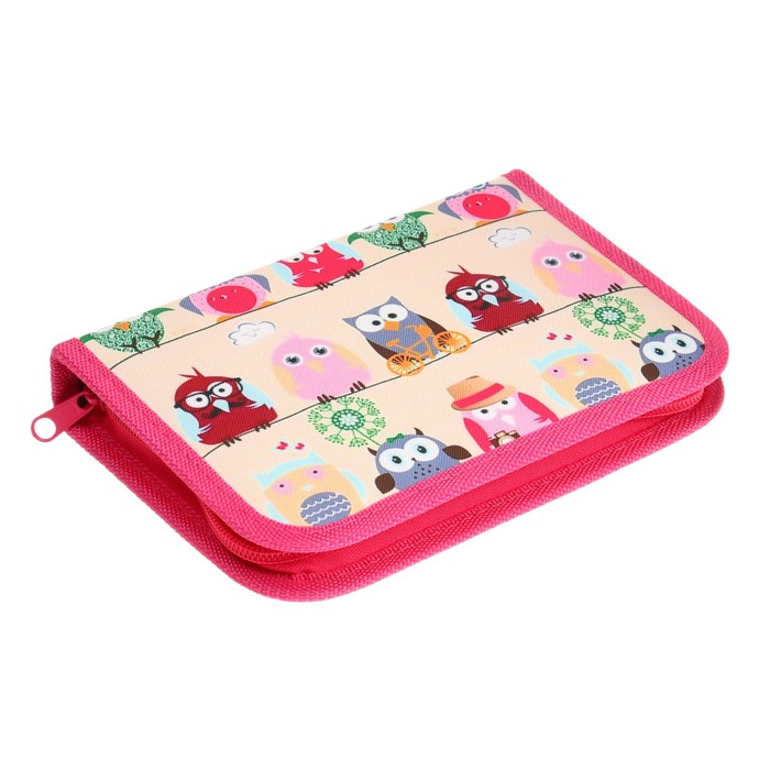Пенал школьный «Совы», 13×19.5 см, 1 секция, на молнии, ткань — Характеристики