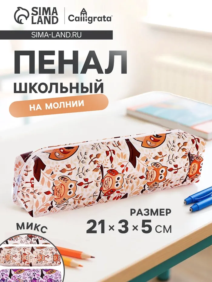 Пенал школьный "Совы", на молнии, МИКС — Характеристики