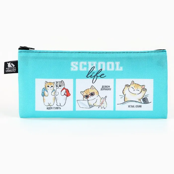 Пенал школьный текстильный «Котик в школе», 20×8 см — Характеристики