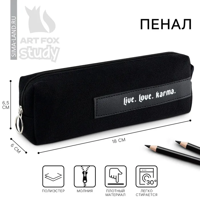 Пенал школьный текстильный «Live. Love. Karma», 18×6.5 см — Характеристики
