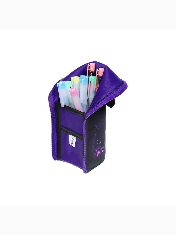 Пенал имеет оптимальный размер и вмещает в себя стандартный набор канцелярских принадлежностей для школы и творчества, в том числе линейку до 20 см.