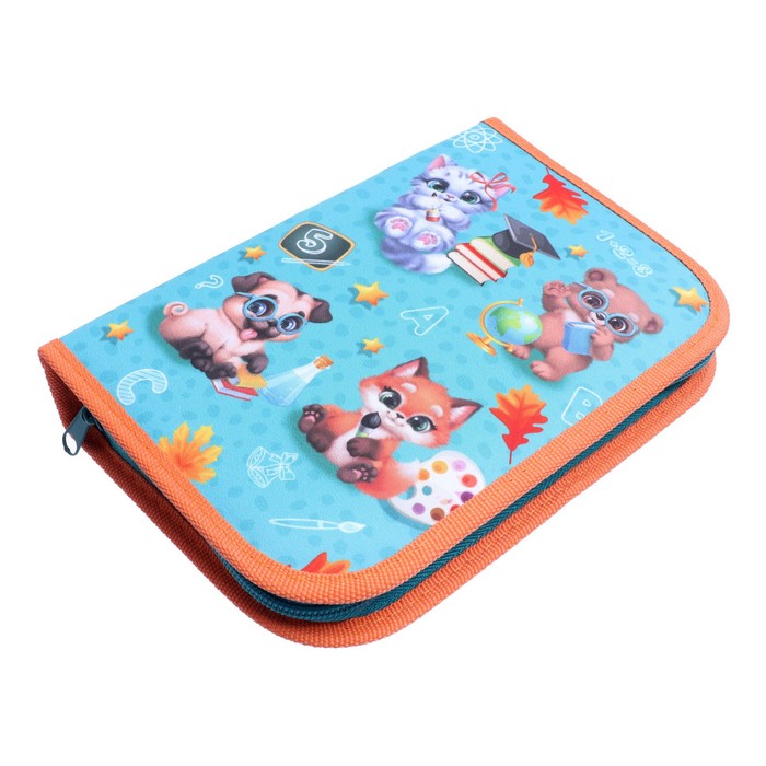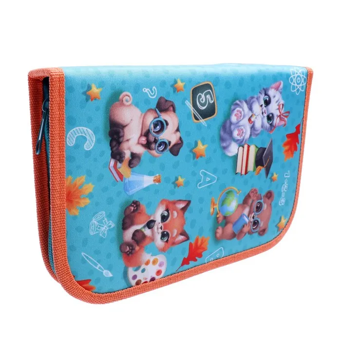 Пенал «Зверята» 3 секции, вкладка внутри, 140×210×40 мм, тканевый — Характеристики