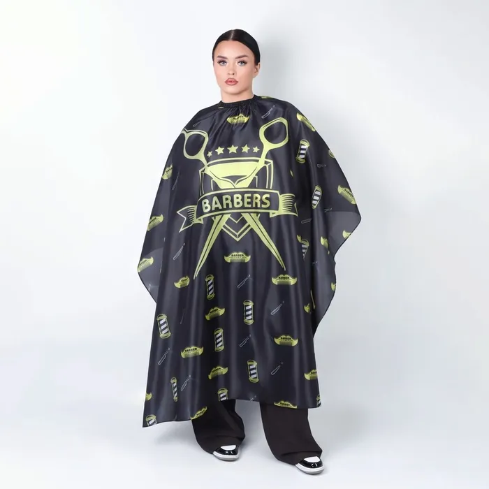 Пеньюар защитит одежду клиента от попадания волос, воды, краски и других составов. Он мягко обхватит шею без утяжеления. Универсальный размер подойдёт людям всех пропорций. Не использовать высокие температуры для разглаживания пеньюара. Рекомендуется использовать метод отпаривания.