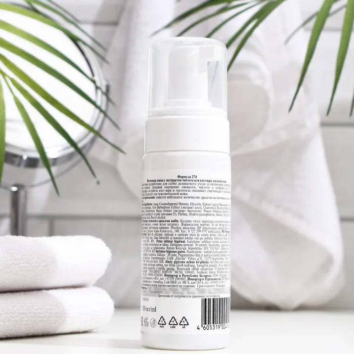 - Пенка бережно очищает интимную зону, не нарушая естественный баланс микрофлоры и не вызывая раздражений, что особенно важно для чувствительной кожи.