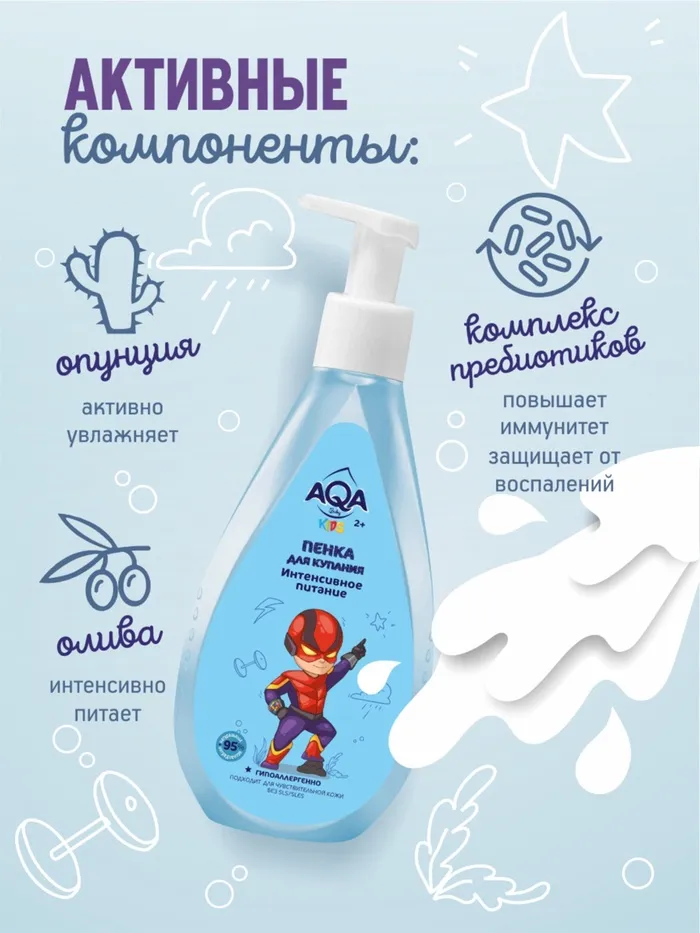 Пенка для купания мальчиков AQA baby KIDS интенсивное питание, 250 мл — Характеристики