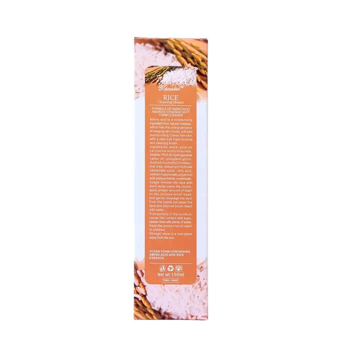 Нежная очищающая формула для снятия макияжа с рисом, пенка нежная, насыщенная и плотная, мягко удаляет излишки жира, грязи и остатки макияжа с кожи, восполняет влагу кожи, увлажняет ее и доставляет удовольствие от очищения,оставляя кожу увлажненной и чистой,освежающей и чистой.