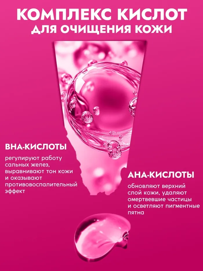Комплекс АНА и BHA кислот мягко отшелушивает и обеспечивает ровный микрорельеф кожи.