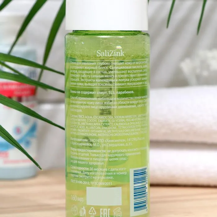 Пенка для умывания SALIZINK специально разработана для жирной и комбинированной кожи, склонной к появлению прыщей. Средство глубоко очищает кожу от загрязнений, уменьшает жирный блеск и количество несовершенств. Салициловая кислота и цинк, входящие в состав, обладают мощным антибактериальным и антисептическим действием, уменьшают воспаления, регулируют работу сальных желез и препятствуют появлению прыщей. Экстракты календулы и лопуха ускоряют заживление кожи, выводят токсины, снимают покраснение и зуд.
