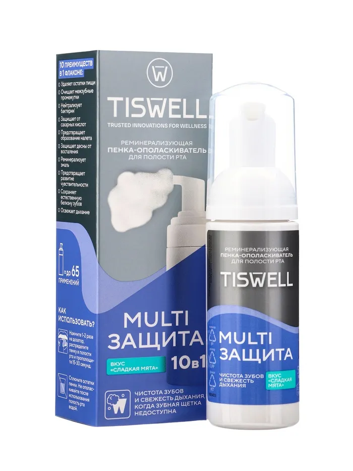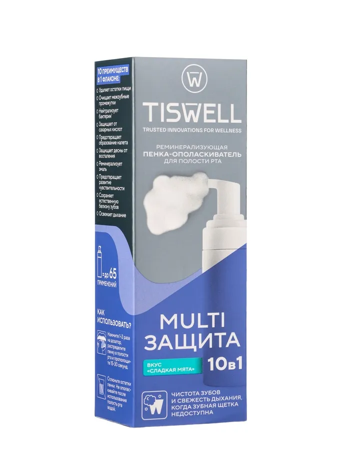 Пенка-ополаскиватель для полости рта 10 в 1 «Сладкая мята», 50 мл — инновационное средство для комплексного ухода за зубами и дёснами. Обеспечивает 10 полезных эффектов: защищает от кариеса, укрепляет эмаль, борется с налётом, уменьшает чувствительность, освежает дыхание, поддерживает здоровье дёсен, способствует заживлению микроповреждений, предотвращает воспаления, уменьшает кровоточивость и улучшает общее состояние полости рта.