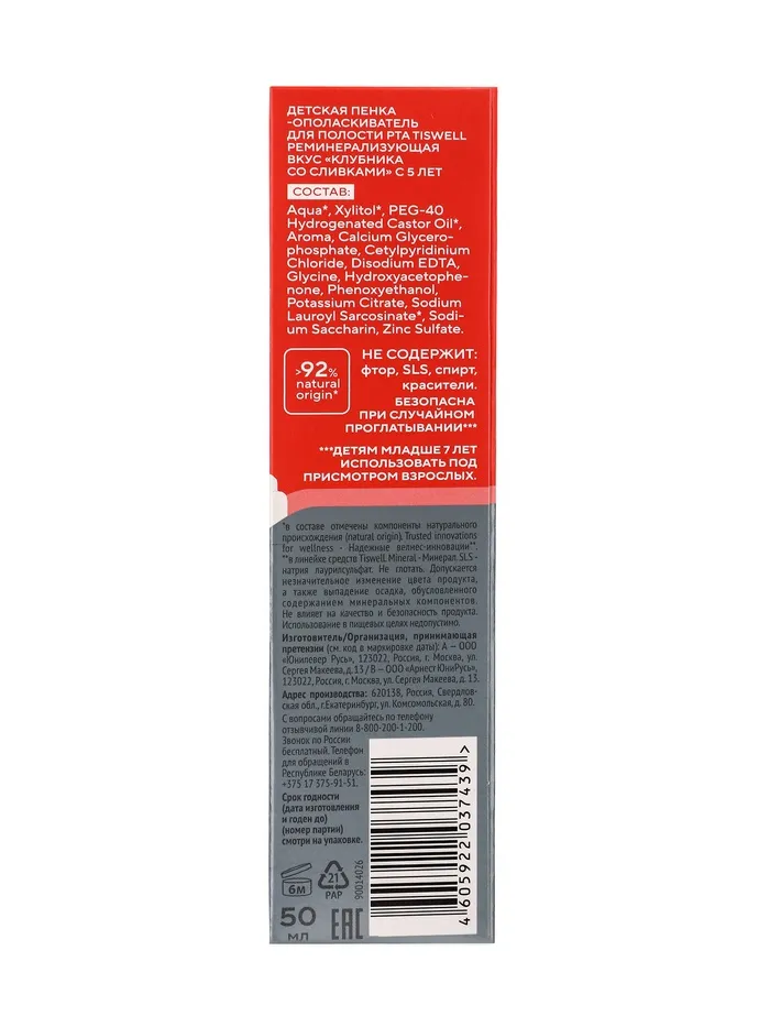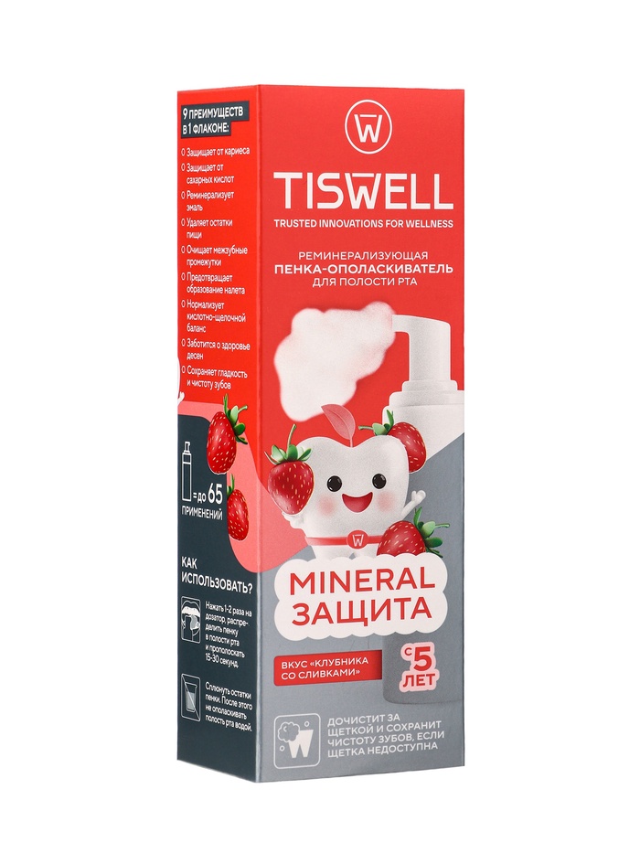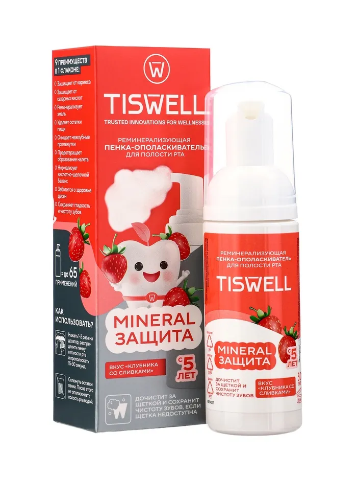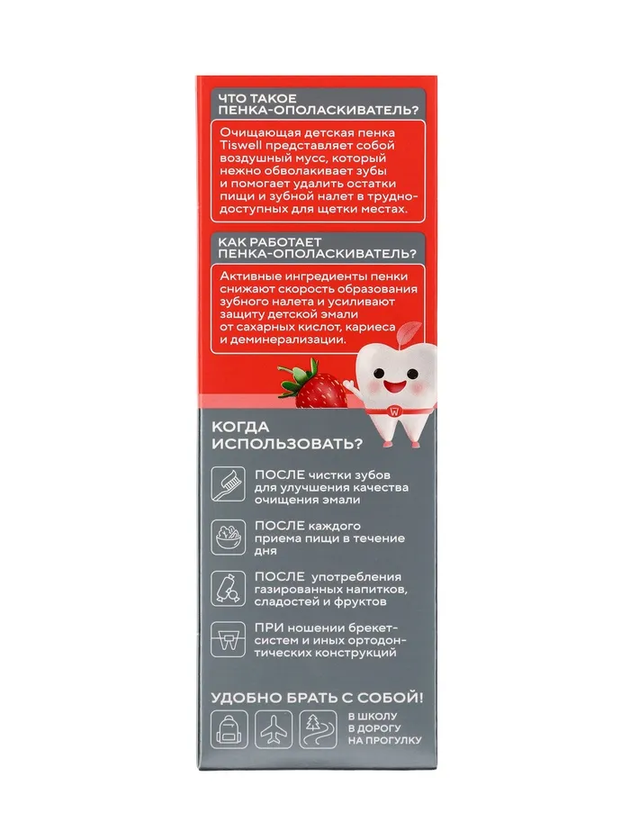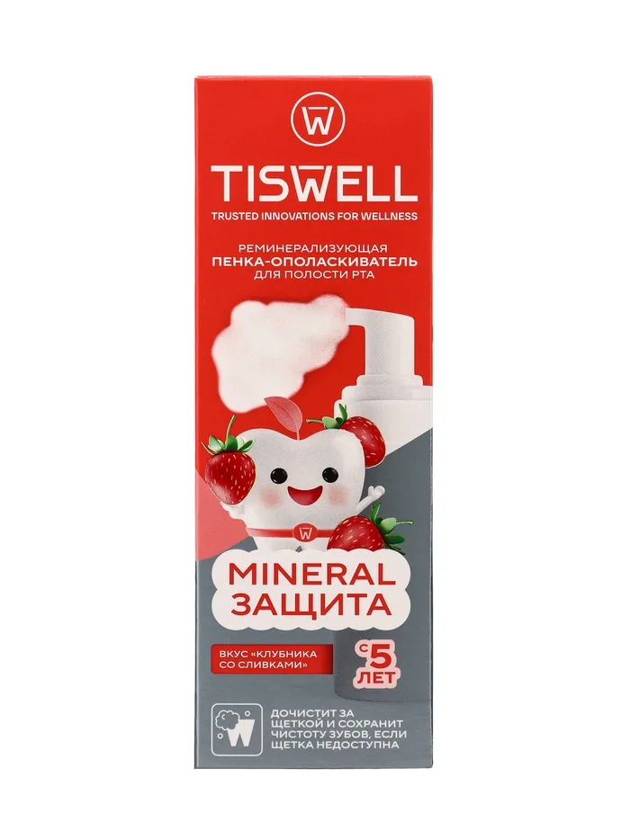 Пенка-ополаскиватель для полости рта детский «Клубника со сливками» 5+, 50 мл — мягкое и безопасное средство для ежедневного ухода за зубами и дёснами детей старше 5 лет. Обеспечивает бережное удаление налёта, укрепляет эмаль и поддерживает здоровье дёсен, способствуя профилактике кариеса.