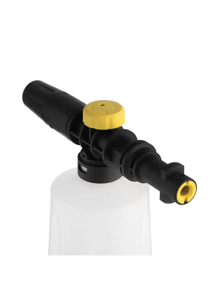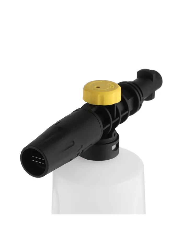 С помощью пенной насадки для минимойки создаётся пена, которой хватит для очистки автомобиля, мотоцикла. Также можно использовать пенную насадку для обработки фасадов из камня или дерева.
