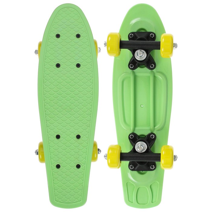 Компактный и манёвренный пенниборд — отличный выбор для юных начинающих скейтбордистов. Предназначен для катания по городским улицам. Дека с ребристой поверхностью обеспечивает хорошее сцепление с подошвой обуви и не позволяет ногам скользить по доске.