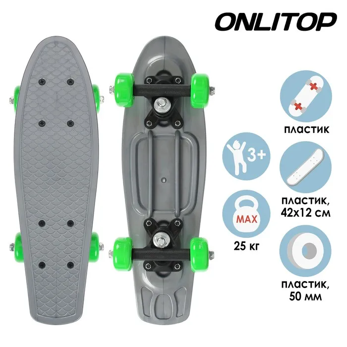 Материал деки изготовлен из пластика — это повышает уровень долговечности и устойчивости к влаге, поэтому пенниборд подходит для регулярной езды в любых погодных условиях.