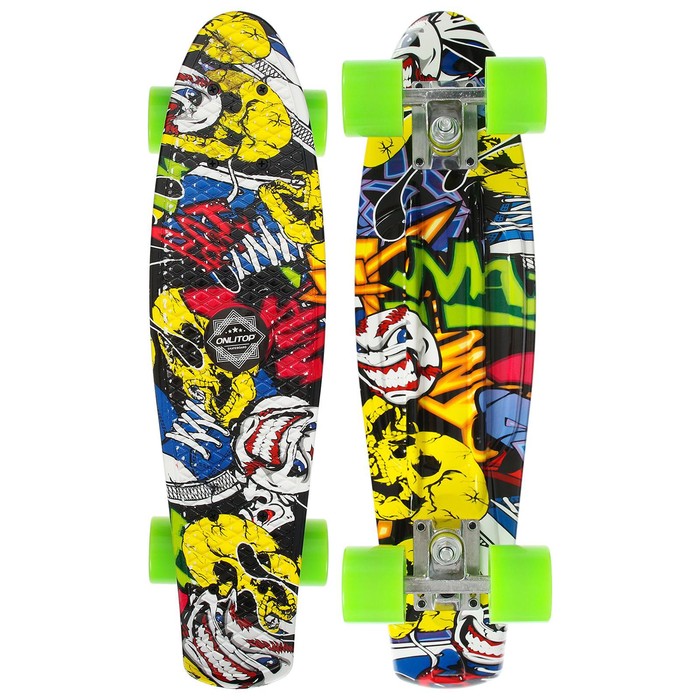 Компактный и манёвренный пенниборд — отличный выбор для юных начинающих скейтбордистов. Предназначен для катания по городским улицам. Дека с ребристой поверхностью обеспечивает хорошее сцепление с подошвой обуви и не позволяет ногам скользить по доске.