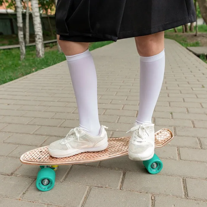 Компактный и манёвренный пенниборд — отличный выбор для юных начинающих скейтбордистов. Предназначен для катания по городским улицам. Дека с ребристой поверхностью обеспечивает хорошее сцепление с подошвой обуви и не позволяет ногам скользить по доске.