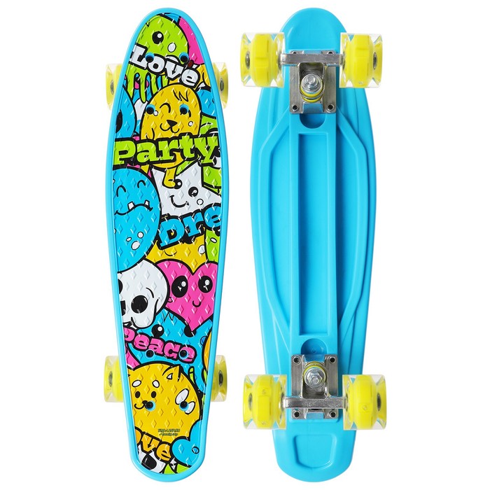 Пенниборд ONLYTOP «Рожицы», 56 х 16 см, колёса световые PU 60 х 45 мм, ABEC 7, алюминиевая подвеска — Характеристики