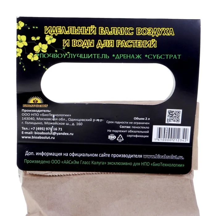 • Сделан из переработанного стекла, поэтому растения получают из него монокремниевую кислоту (H₄SiO₄). Это повышает их стрессоустойчивость, стимулирует рост и обильное цветение.