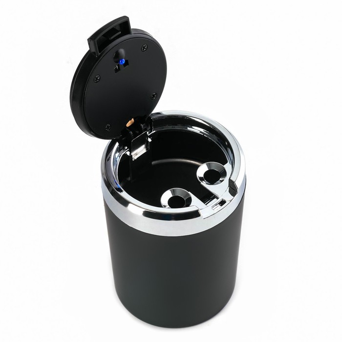 - При поднятии крышки автоматически включается синий светодиод. Он имеет достаточную яркость, позволяющую даже ночью увидеть, куда стряхивать пепел.
