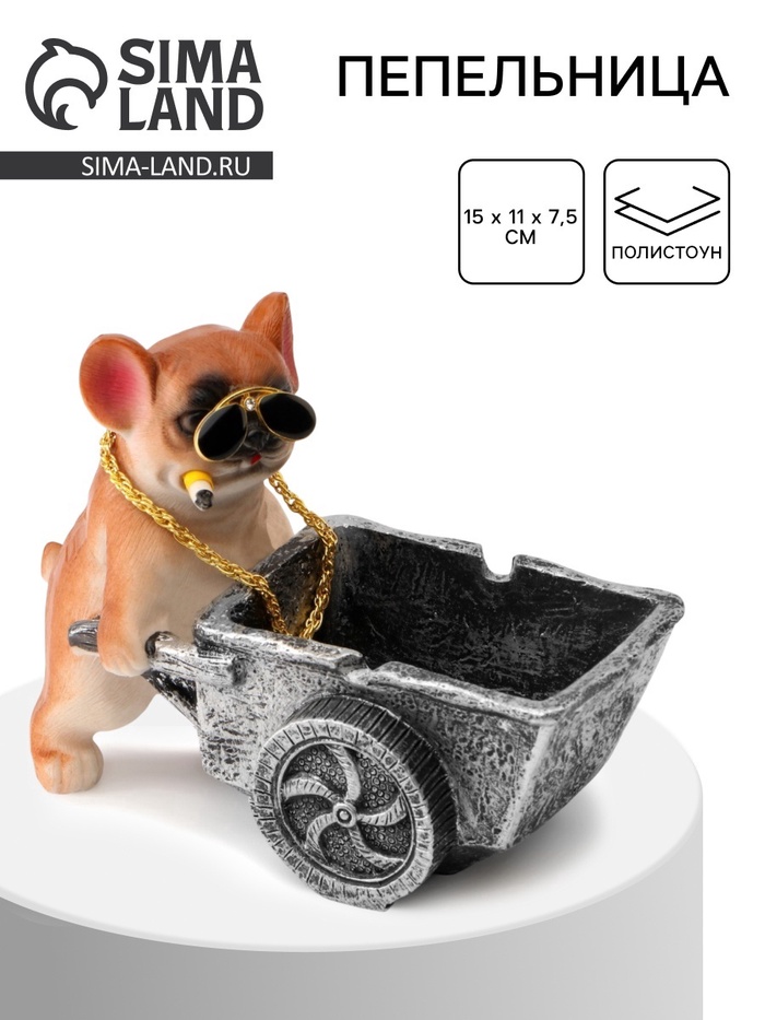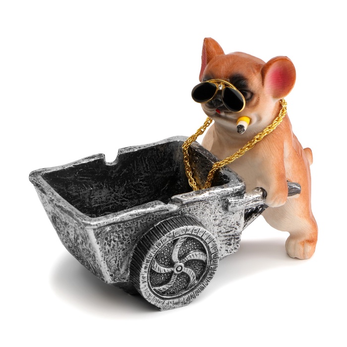 Пепельница для дома «Мопс с тележкой», для сигарет и стиков, 15×11×7.5 см — Характеристики