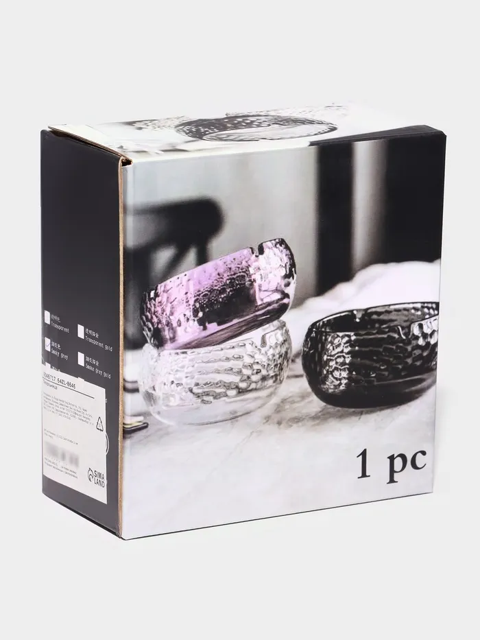 - Качество материалов: изготовленная из прочного стекла, пепельница устойчива к механическим повреждениям и легко очищается.