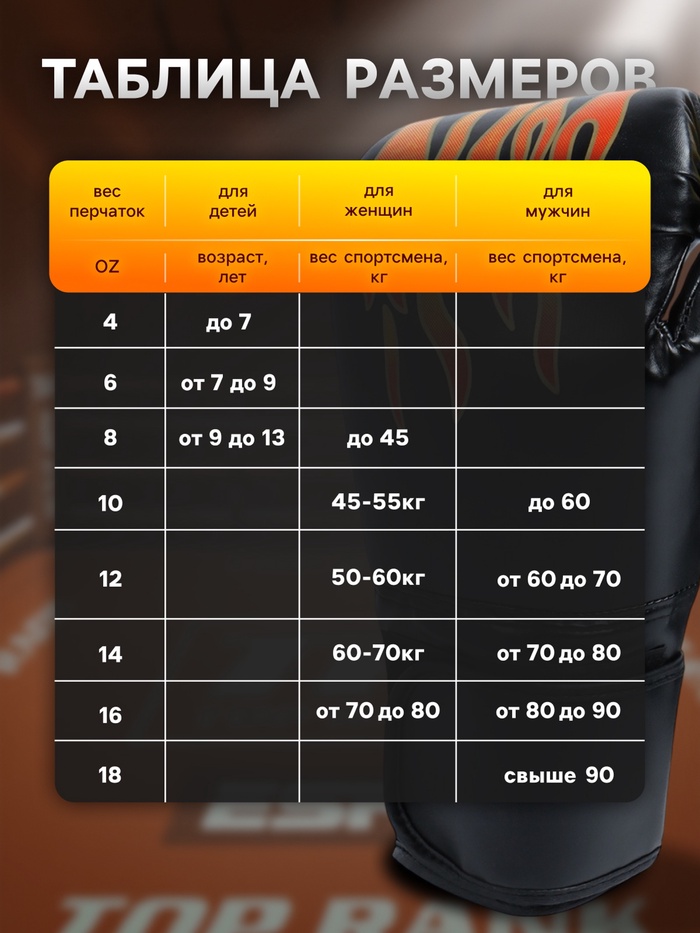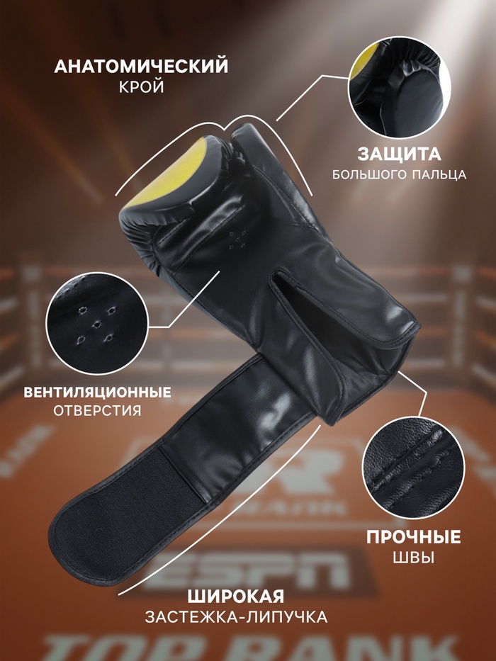 Перчатки боксёрские, размер 8 oz, чёрные — Характеристики