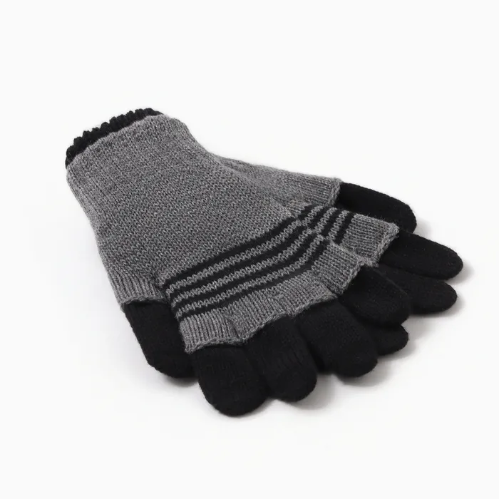 Перчатки детские двойные, чёрный/серый, размер 14 — Характеристики