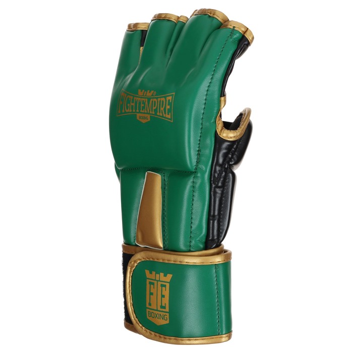 Перчатки для смешанных единоборств защищают кисти при ударах. Открытые фаланги позволяют бороться, не стесняя движений. Анатомический крой перчатки повторяет естественную форму кулака. Широкий ремень с липучкой плотно прилегает к руке и предотвращает риск возникновения травмы запястья.
