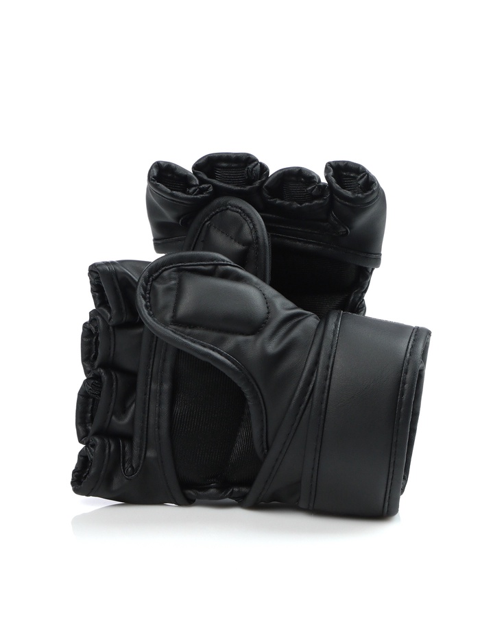 Перчатки для смешанных единоборств защищают кисти при ударах. Открытые фаланги позволяют бороться, не стесняя движения. Анатомический крой перчатки повторяет естественную форму кулака. Широкий ремень с липучкой плотно прилегает к руке и предотвращает риск возникновения травмы запястья.