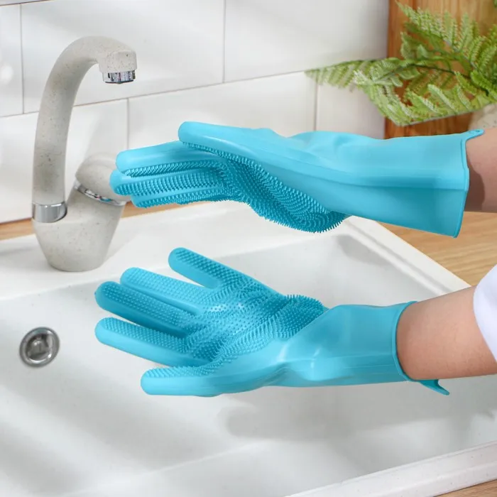 Силиконовые перчатки предназначены для мытья посуды, отлично справятся с мытьём овощей и фруктов, раковин, кранов, а также ковров и мебели. С их помощью удобно собирать шерсть домашних животных.
