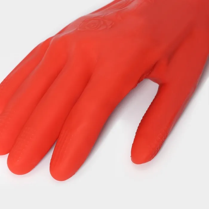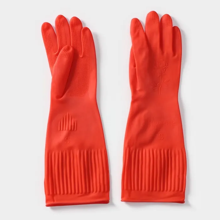 Перчатки хозяйственные Доляна, размер S, длинные манжеты, латексные, красные — Характеристики