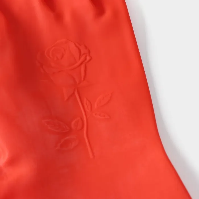 Перчатки производят из каучука — натуральной резины. Он водонепроницаем и хорошо растягивается: даже после неоднократного использования материал не теряет своих свойств.