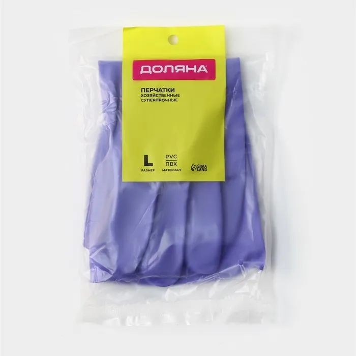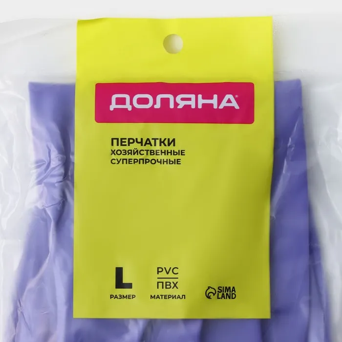 Перчатки хозяйственные Доляна, суперпрочные, размер L, ПВХ, фиолетовые — Характеристики