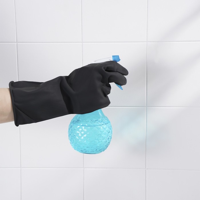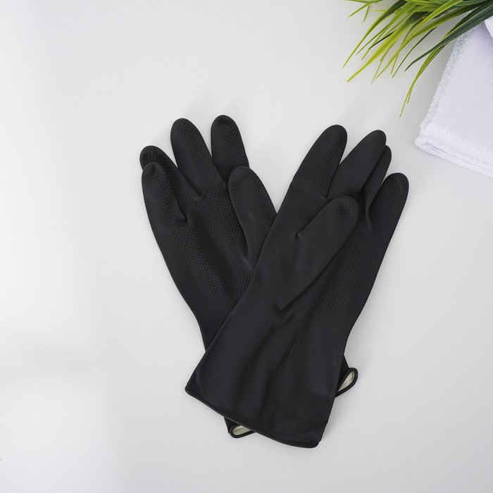 Перчатки хозяйственные плотные Доляна, размер L, резиновые, чёрные — Характеристики