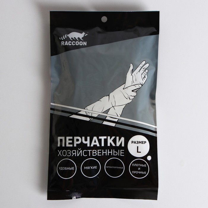 Перчатки хозяйственные Raccoon, ПВХ, 70 г, размер L, цвет белый — Характеристики