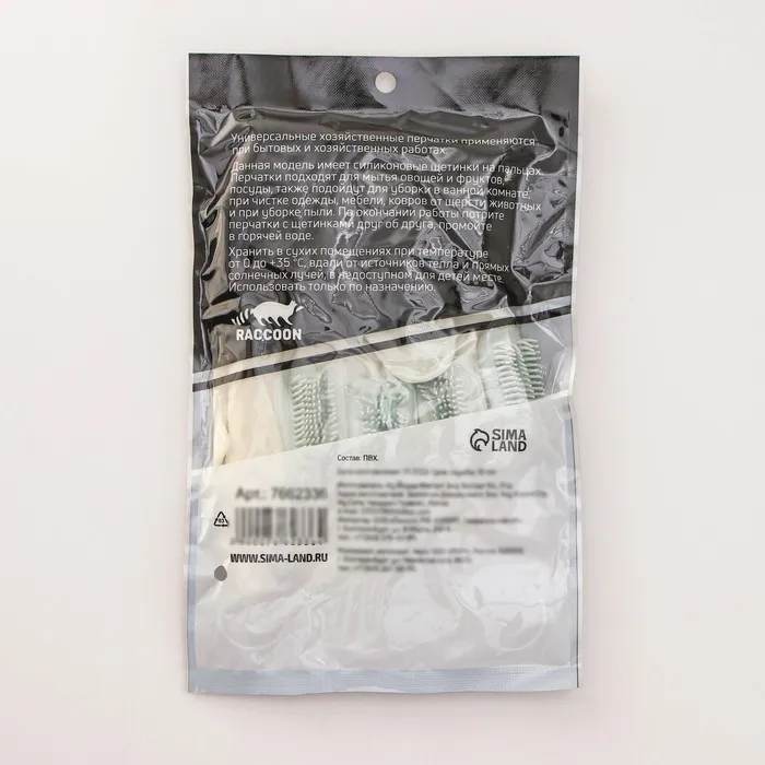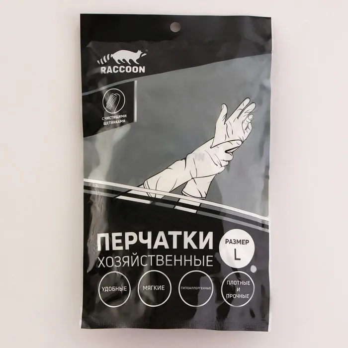 Перчатки хозяйственные Raccoon с щётками, ПВХ, 90 г, размер L, белые — Характеристики