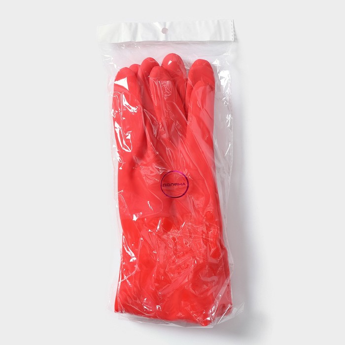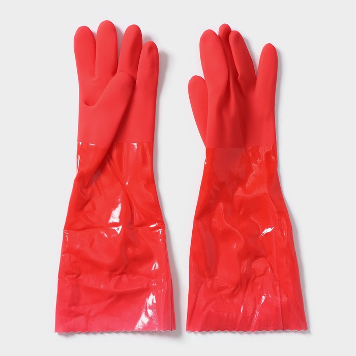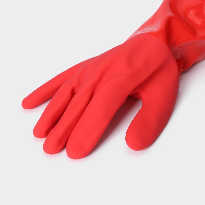 Перчатки хозяйственные с утеплителем Доляна, размер L, длинные манжеты, резиновые, цвет красный — Характеристики