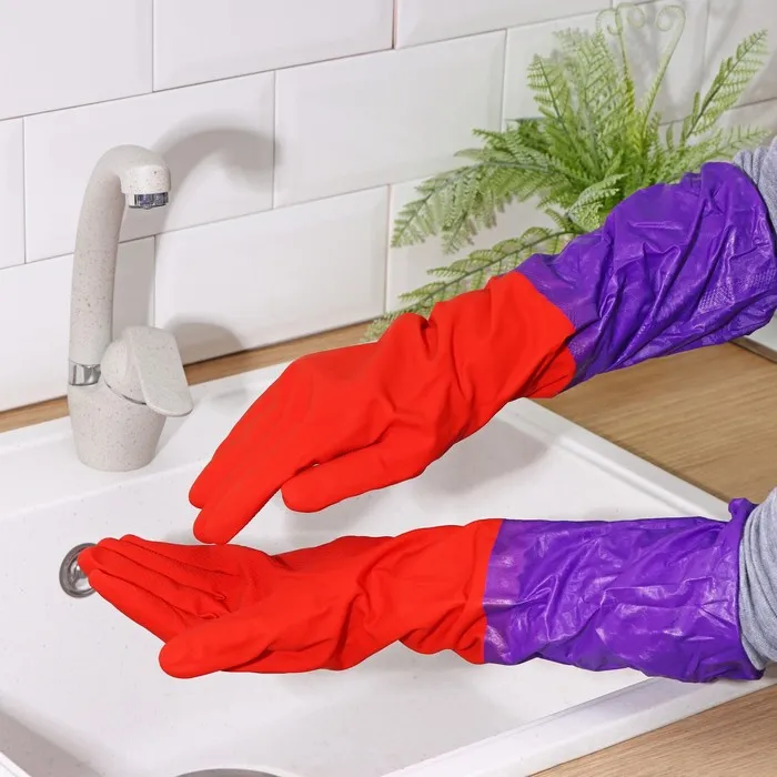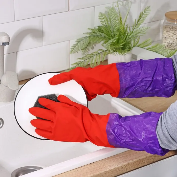 Перчатки хозяйственные с утеплителем Доляна, размер L, резиновые, длинные манжеты, цвет красный — Характеристики