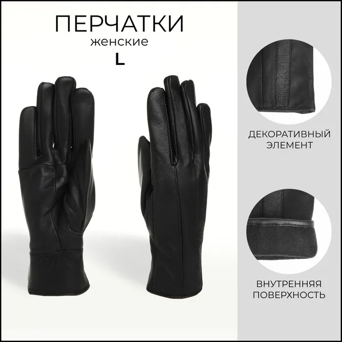 Перчатки кожаные женские, размер L, с флисовым утеплителем, чёрные — Характеристики