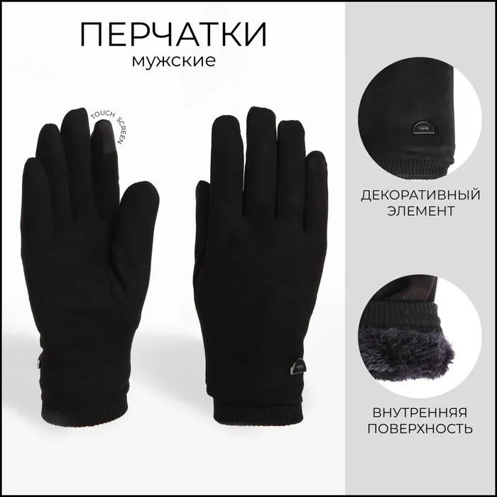 Перчатки мужские, безразмерные, с утеплителем, цвет чёрный — Характеристики