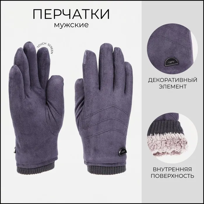 Перчатки мужские, безразмерные, с утеплителем, цвет серый — Характеристики