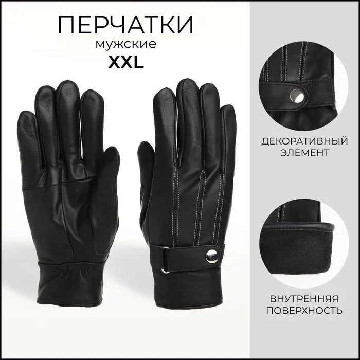 Перчатки мужские, размер XXL, с утеплителем, цвет чёрный — Характеристики