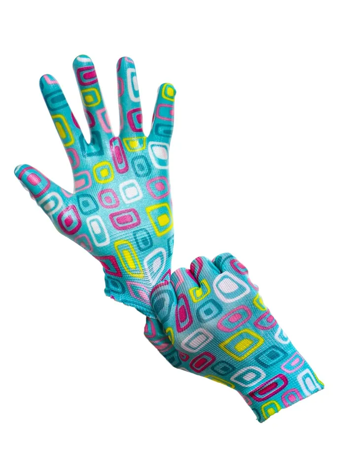 Изделия имеют тканевую основу и специальную PVC-пропитку: такое сочетание материалов делает их одновременно комфортными и износоустойчивыми. Яркая расцветка поможет легко и быстро найти пропажу среди грядок.