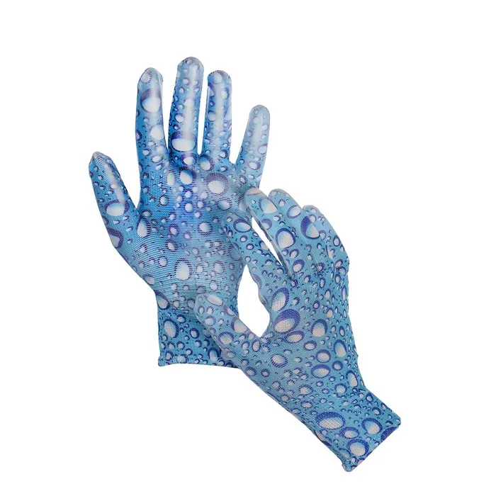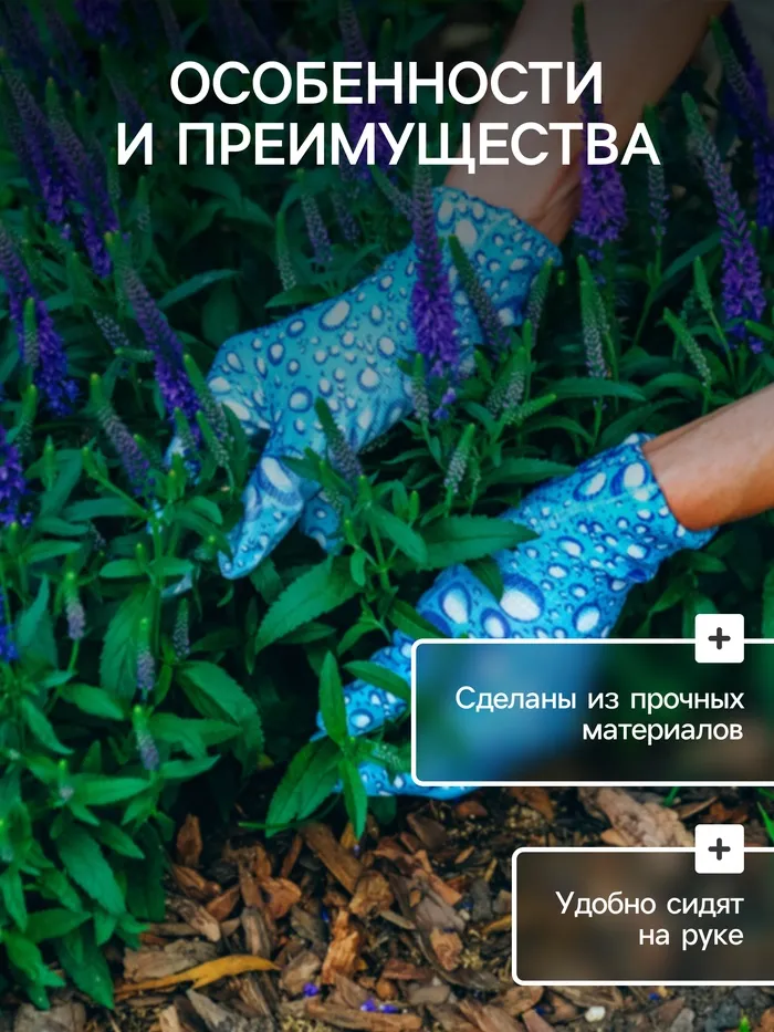 Изделия имеют тканевую основу и специальную PVC-пропитку: такое сочетание материалов делает их одновременно комфортными и износоустойчивыми. Яркая расцветка поможет легко и быстро найти пропажу среди грядок.