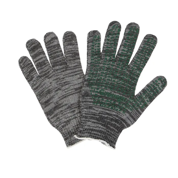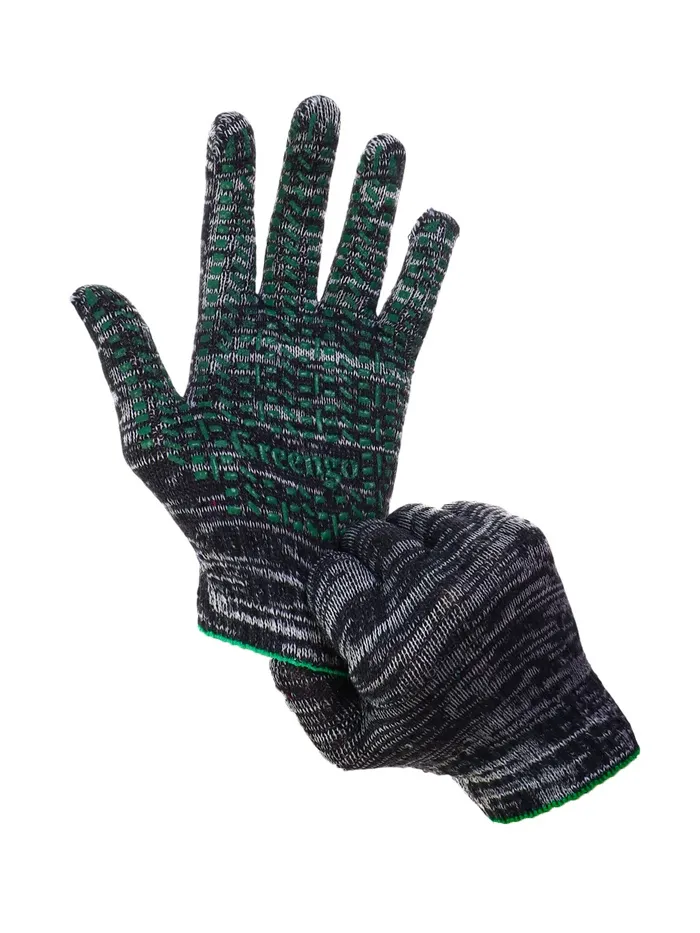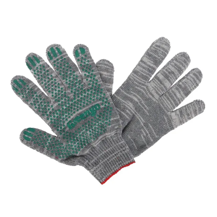 Перчатки рабочие, хб, вязка 10 класс, 5 нитей, размер 9, с ПВХ точками, серые, Greengo — Характеристики