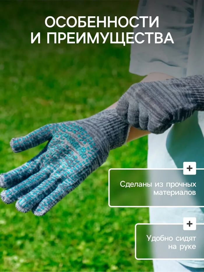 Изделия имеют тканевую основу и специальную PVC-пропитку: такое сочетание материалов делает их одновременно комфортными и износоустойчивыми. Яркая расцветка поможет легко и быстро найти пропажу среди грядок.