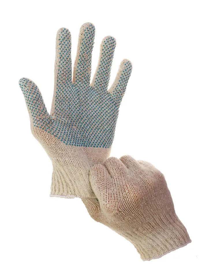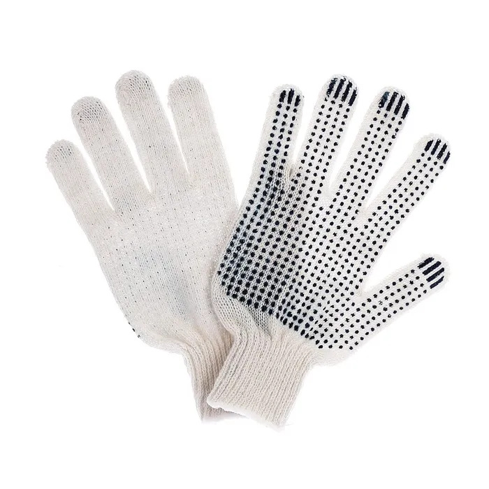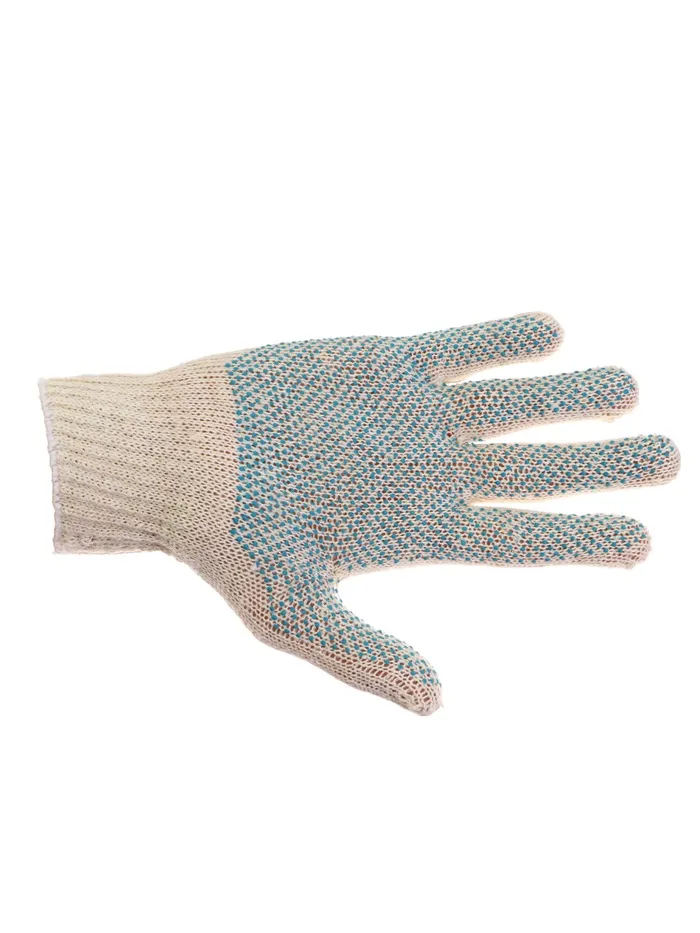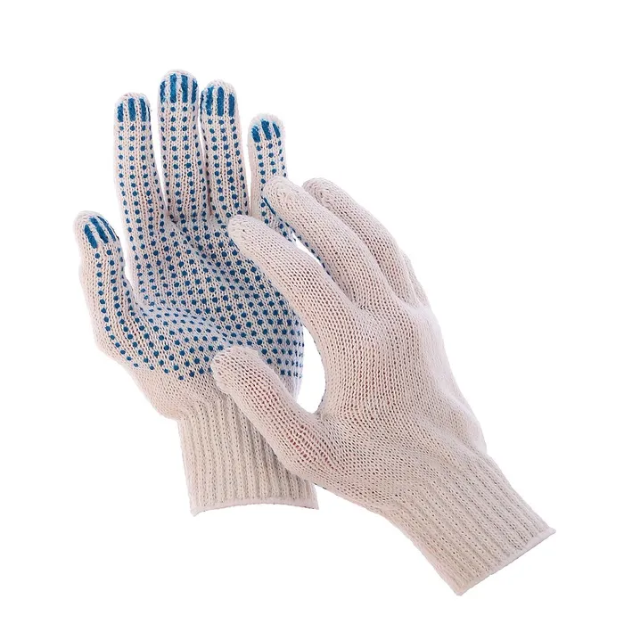 Перчатки рабочие, хб, вязка 7 класс, 3 нити, размер 9, с ПВХ точками, белые — Характеристики