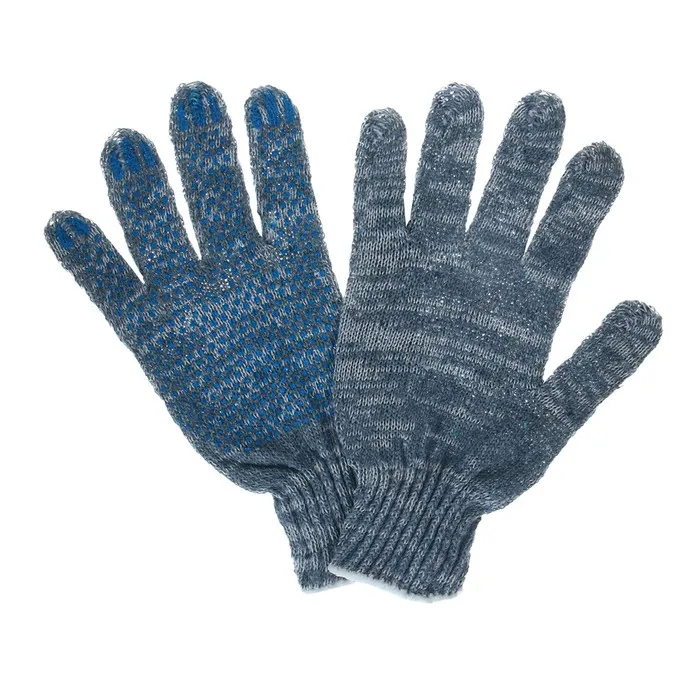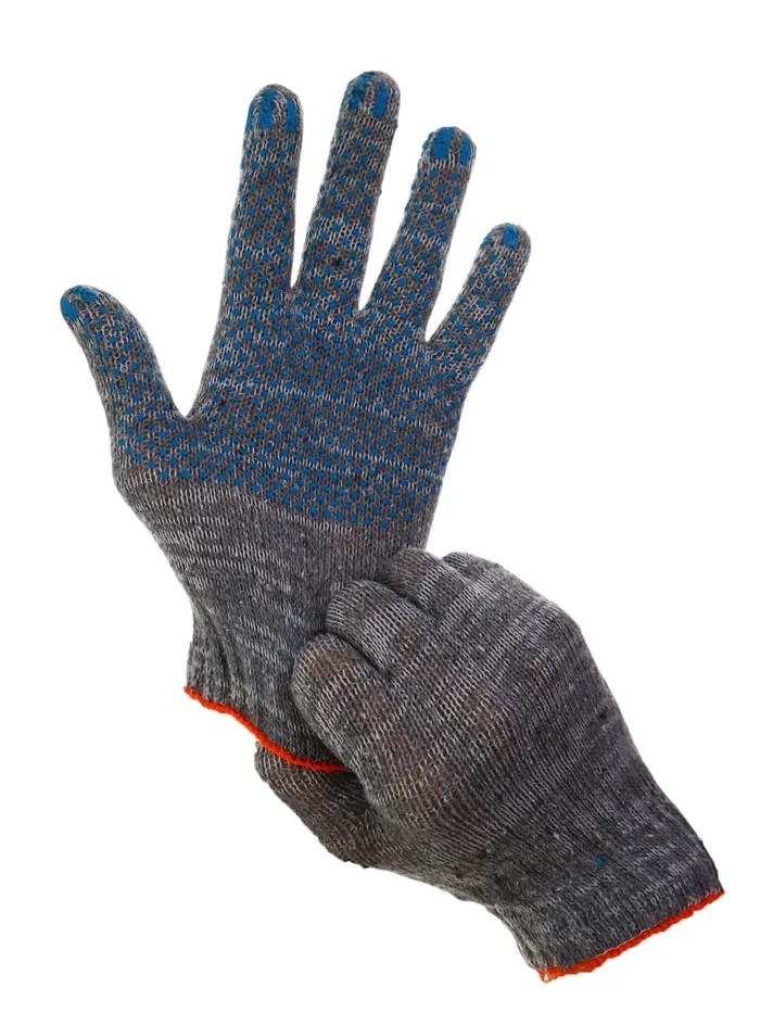 Перчатки рабочие, хб, вязка 7 класс, 3 нити, размер 9, с ПВХ точками, серые — Характеристики
