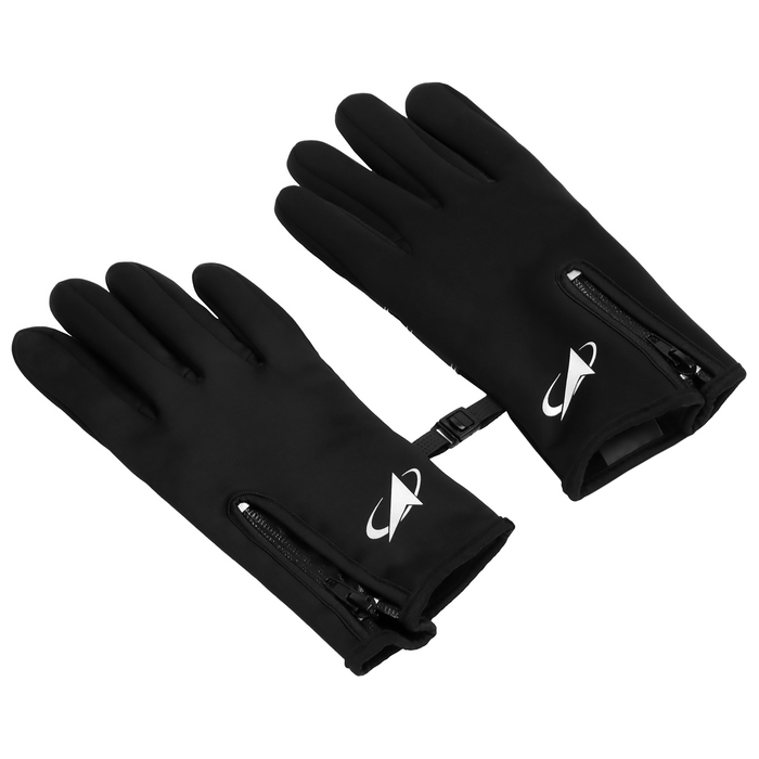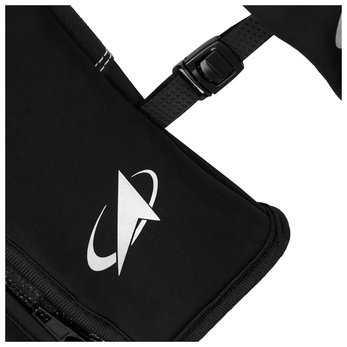 Эластан и полиамид в составе обеспечивают защиту от ветра. Перчатки оснащены светоотражающим элементом, резинкой на запястье и замком на молнии, с помощью которого регулируется обхват кисти. Сенсорные вставки на подушечках пальцев дают возможность пользоваться смартфоном в любых условиях. Специальный зажим на перчатках позволяет скреплять их вместе, чтобы избежать потери.