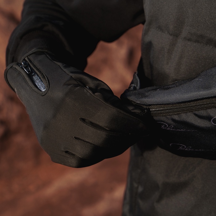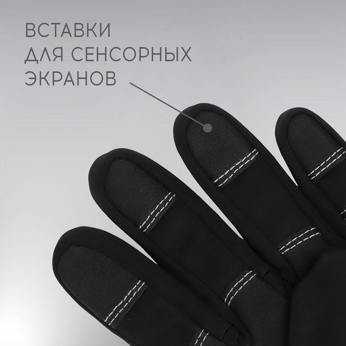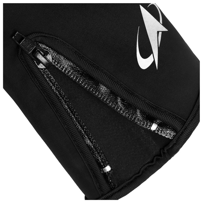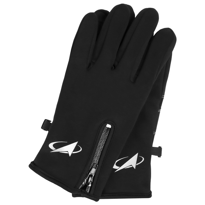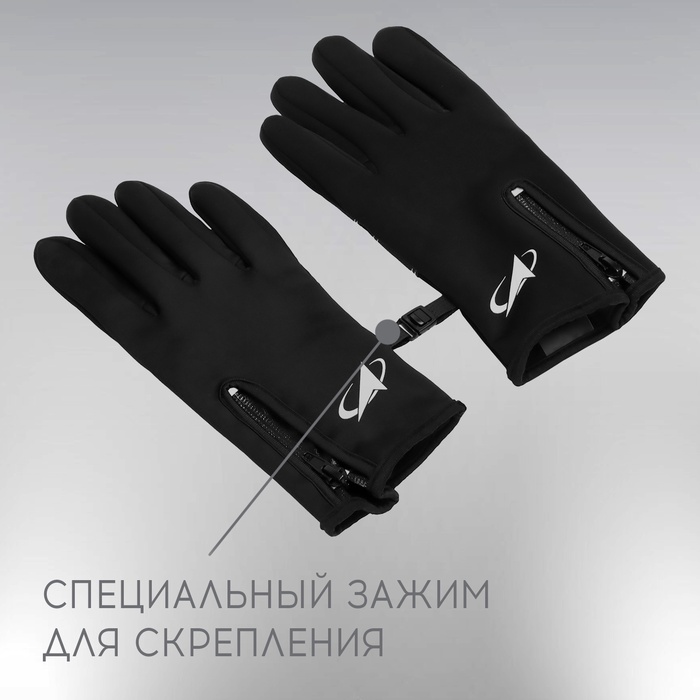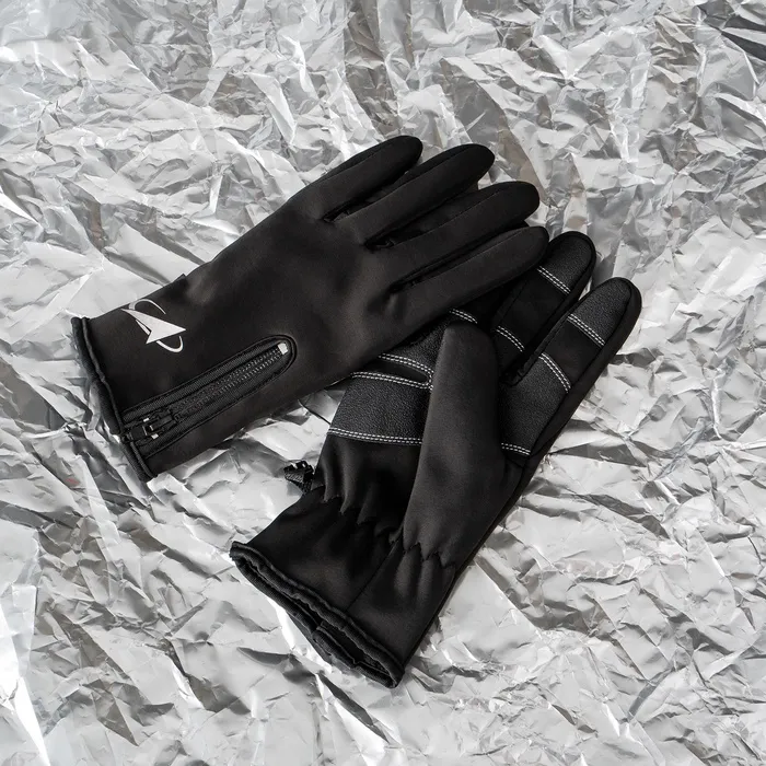 Эластан и полиамид в составе обеспечивают защиту от ветра. Перчатки оснащены светоотражающим элементом, резинкой на запястье и замком на молнии, с помощью которого регулируется обхват кисти. Сенсорные вставки на подушечках пальцев дают возможность пользоваться смартфоном в любых условиях. Специальный зажим на перчатках позволяет скреплять их вместе, чтобы избежать потери.